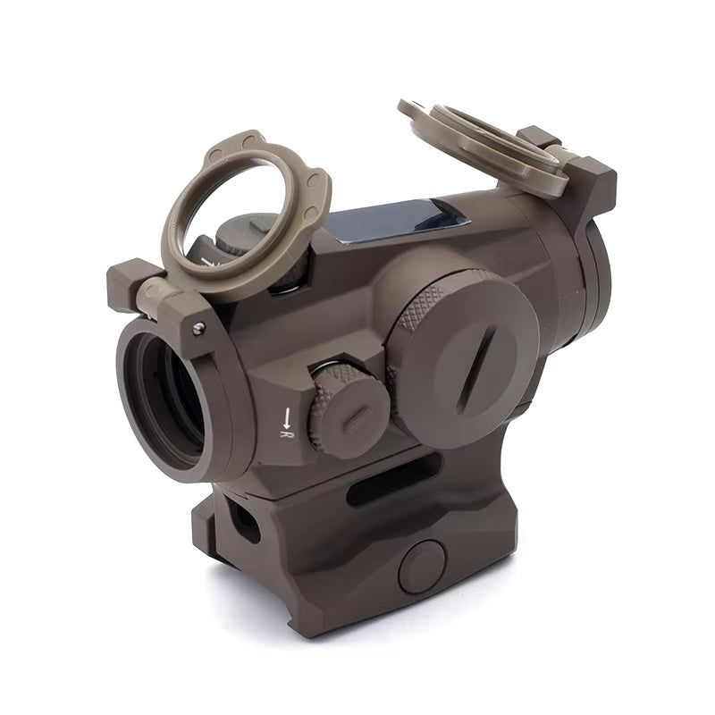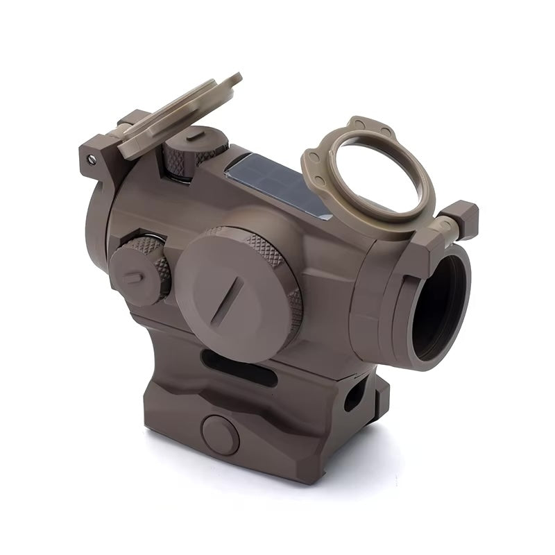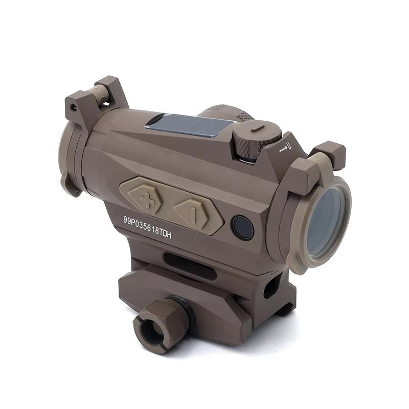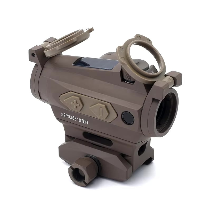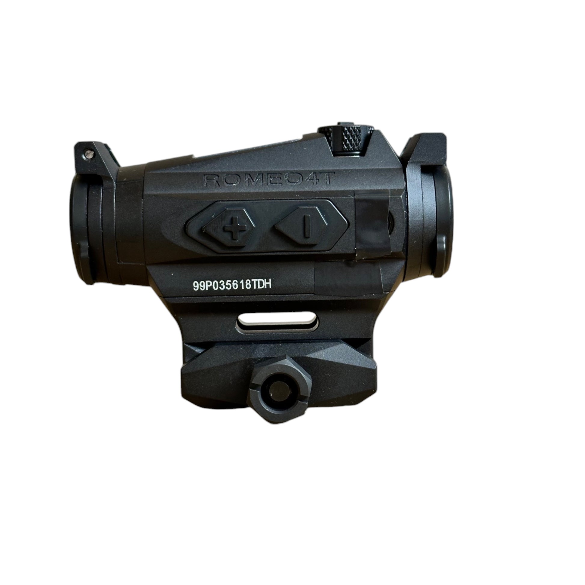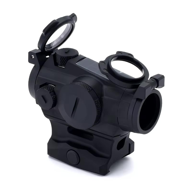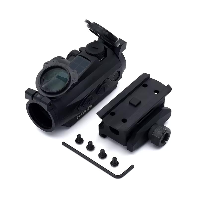 The ROMEO 4T is a solar-powered, ultra-durable red dot sight designed for rugged use and precision shooting. Crafted from lightweight yet strong 7075 aluminum, this sight is built to withstand impact forces up to 850g. Its versatile design includes a 1.41" riser mount and comes standard with see-through lens covers and a hex bolt mount for secure attachment.