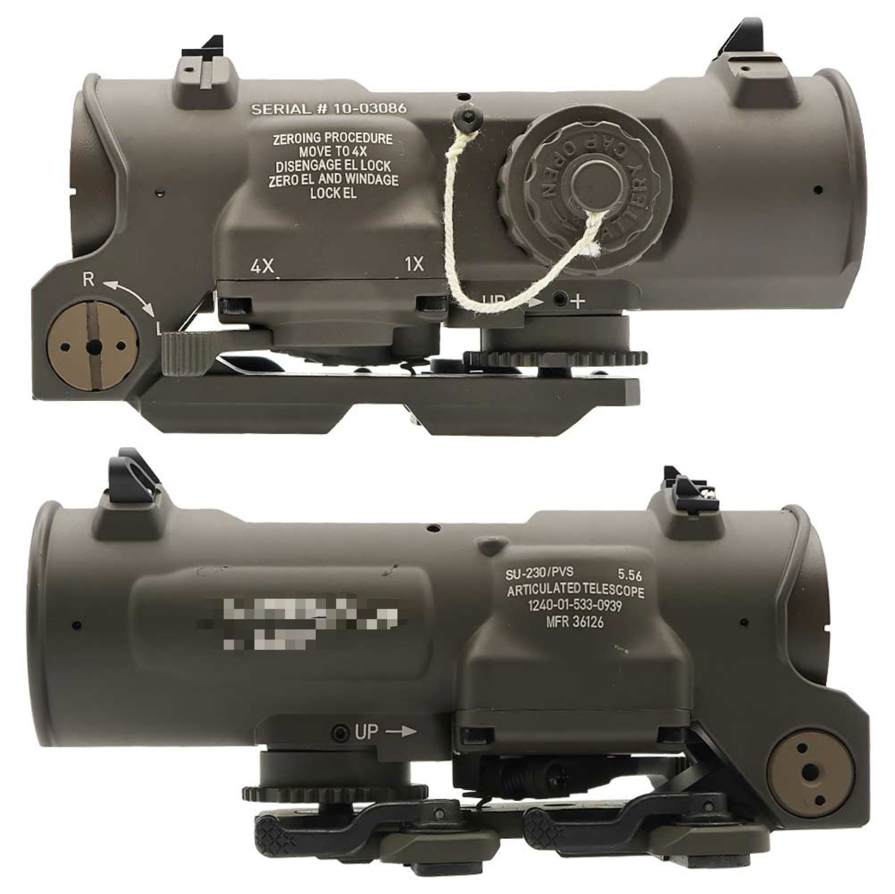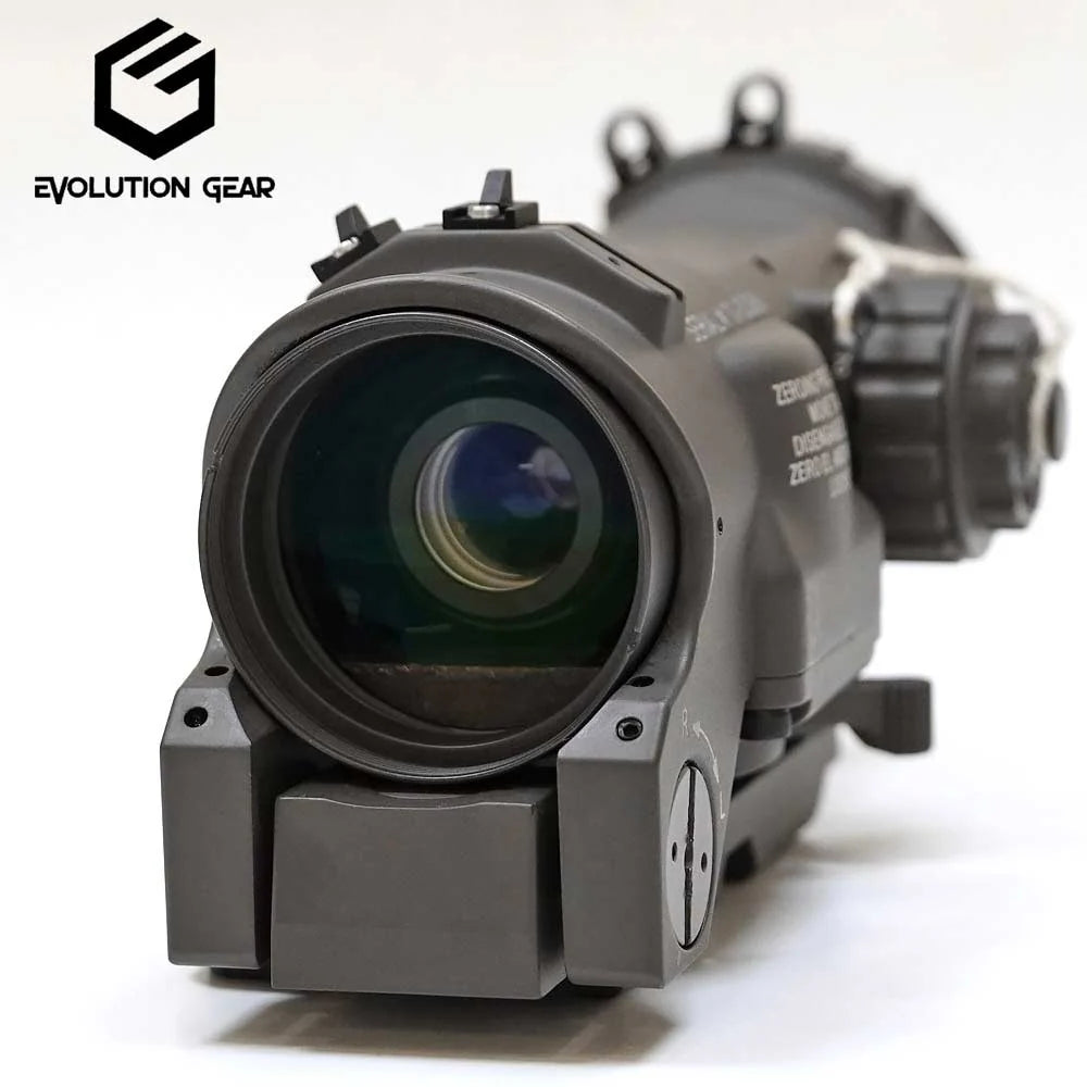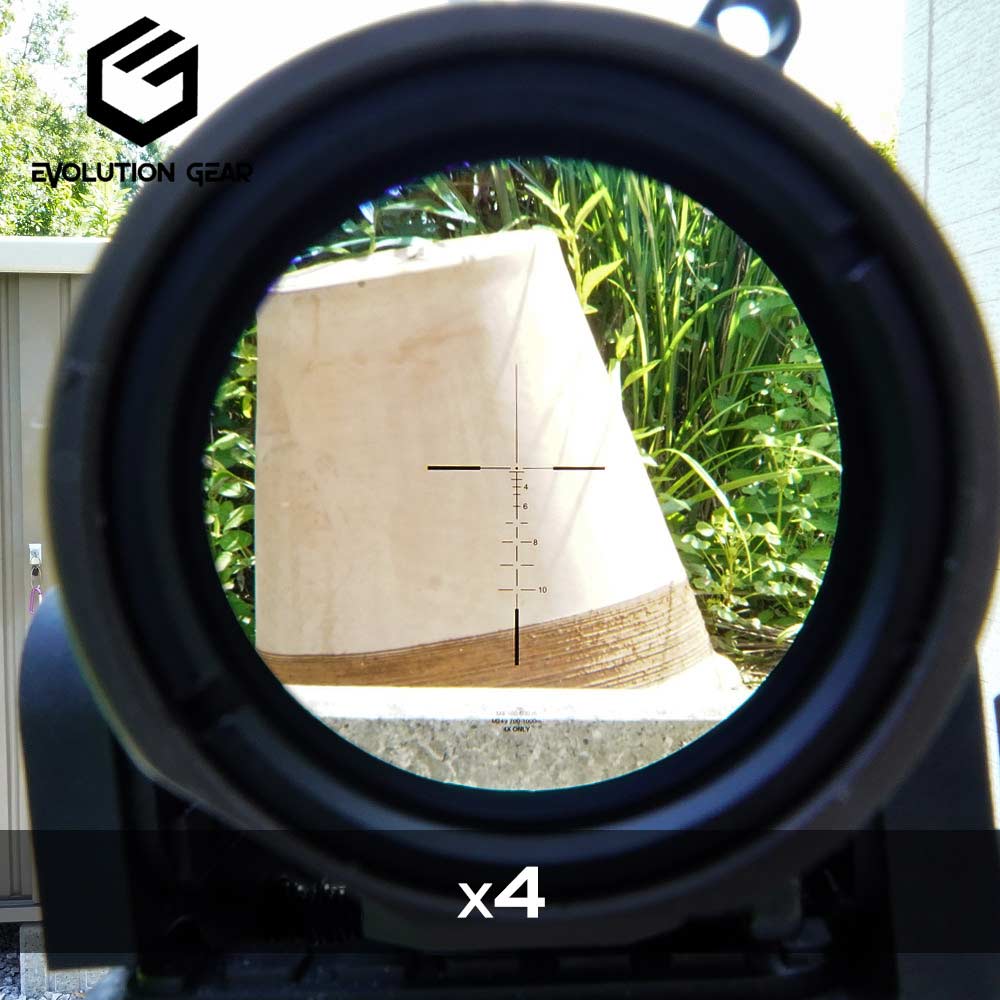 The reticle is cross-shaped and designed to specifications for compatibility with airsoft M4 and M249.